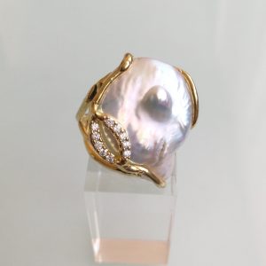Anello perla naturale barocca.Anello zirconi .Anello argento.