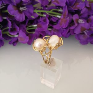 Anello perla naturale bianca barocca.Anello 2 perle. Anello maxi.Anello argento.