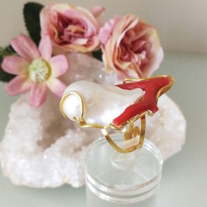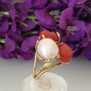 Anello corallo rosso del mediterraneo. Anello perla naturale .Anello argento.