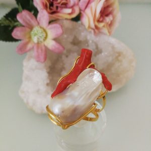 Anelli pietre, perle e corallo