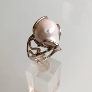 Anello perla naturale barocca bianca. Anello perla stile Liberty