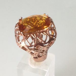 Anello pietra topazio giallo. Anello argento placcato oro