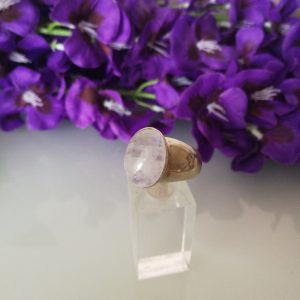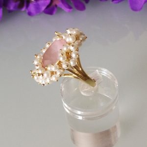 Anello pietra quarzo rosa e perline bianche