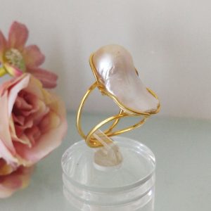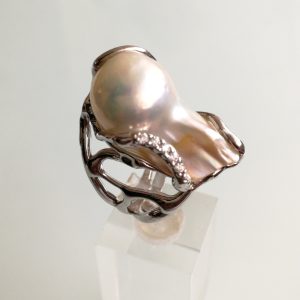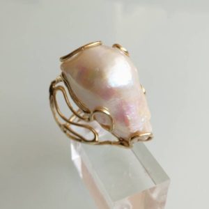 Anello corallo rosso naturale del mediterraneo. Anello perla naturale barocca .Anello argento.
