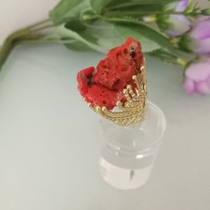 Anello corallo rosso naturale del mediterraneo. Anello maxi corallo.