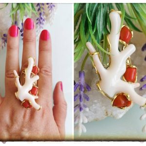 Anello maxi corallo rosa e corallo rosso , anello argento 925, gioielli italiani