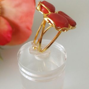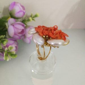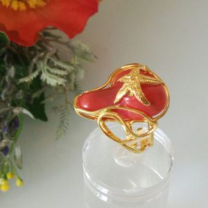 Anello rosa corallo rosso naturale. Anello maxi. Anello stile Liberty.