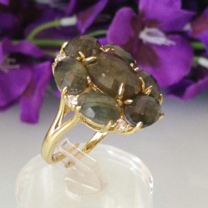 Anello pietre vere di quarzo grigio con striature. Anello elegante.Anello pietre multiple.