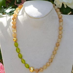 Collana pietre dure quarzo citrino e cristalli verdi, collana girocollo, collana moderna