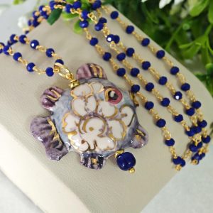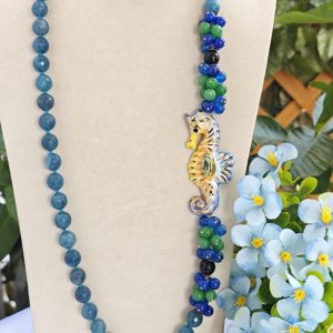 Collana ceramica Caltagirone, pietre dure agata , collana cavalluccio marino, collana siciliana