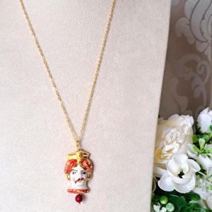Collana testa di moro in ceramica di Caltagirone , collana siciliana