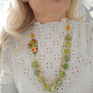 Collana ceramica di Caltagirone e pietre dure agata verde e gialla , collana siciliana