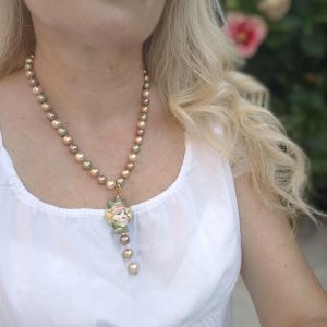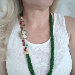 Collana cammeo ceramica Caltagirone, collana multifilo cristalli verdi , collana siciliana