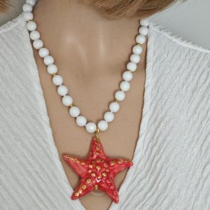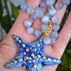 Collana stella marina ceramica di Caltagirone, collana girocollo, collana siciliana