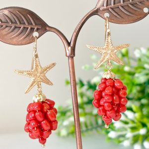 Orecchini corallo rosso naturale , orecchini stelle marine argento 925 , gioielli italiani