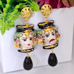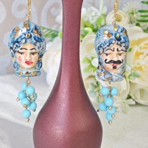 Orecchini ceramica Caltagirone, orecchini pasta di turchese , orecchini teste di moro siciliani