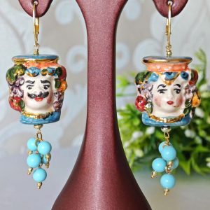 Orecchini ceramica Caltagirone, orecchini perle turchese , orecchini teste di moro siciliani