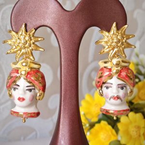 Orecchini teste di moro ceramica Caltagirone, orecchini fiori , orecchini siciliani,  orecchini maxi