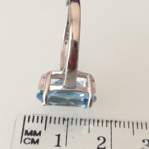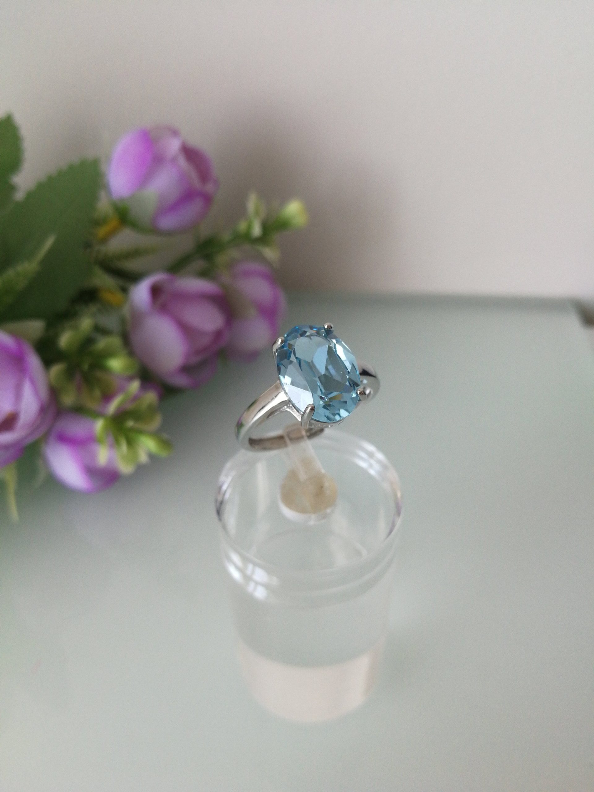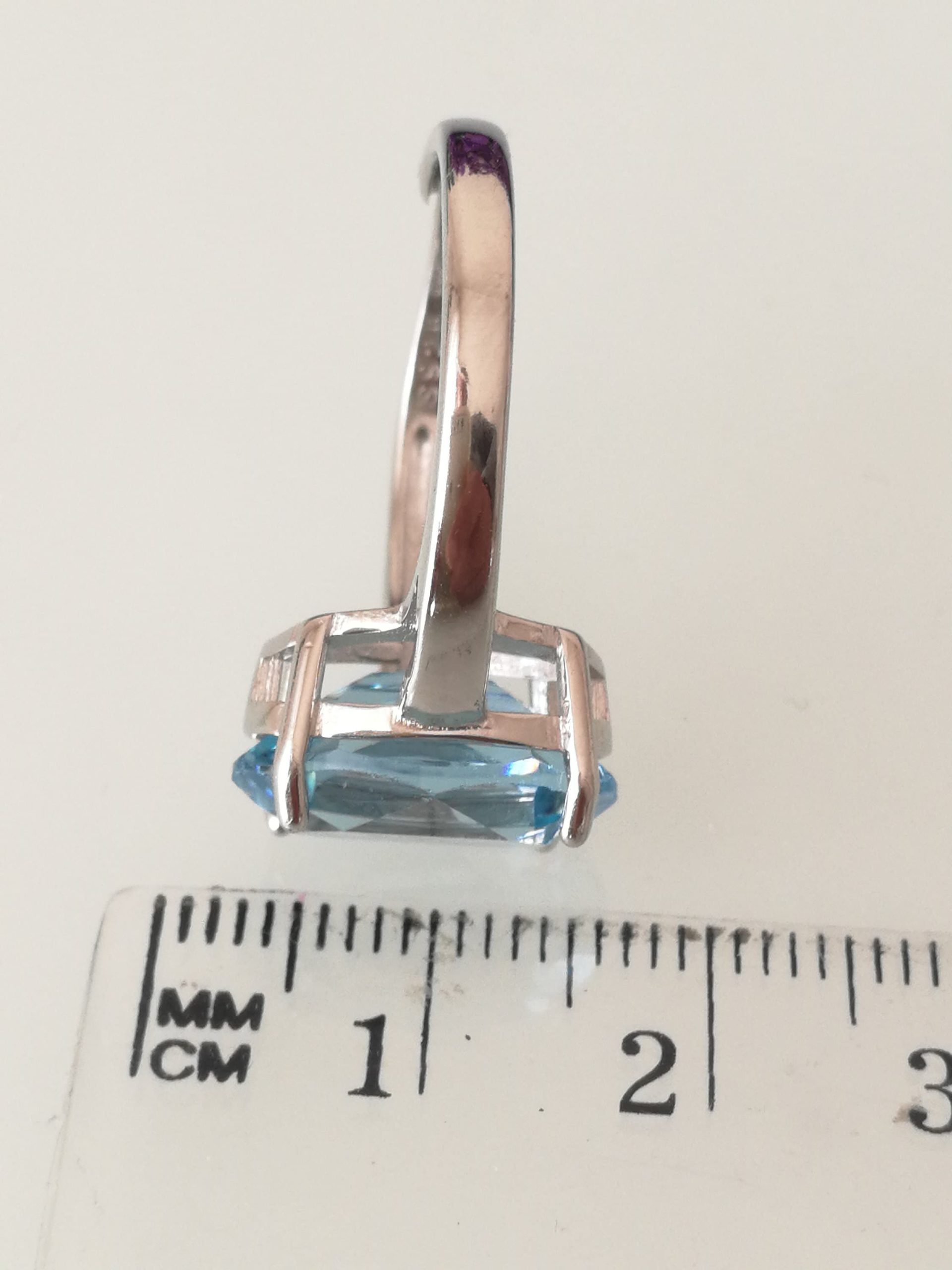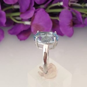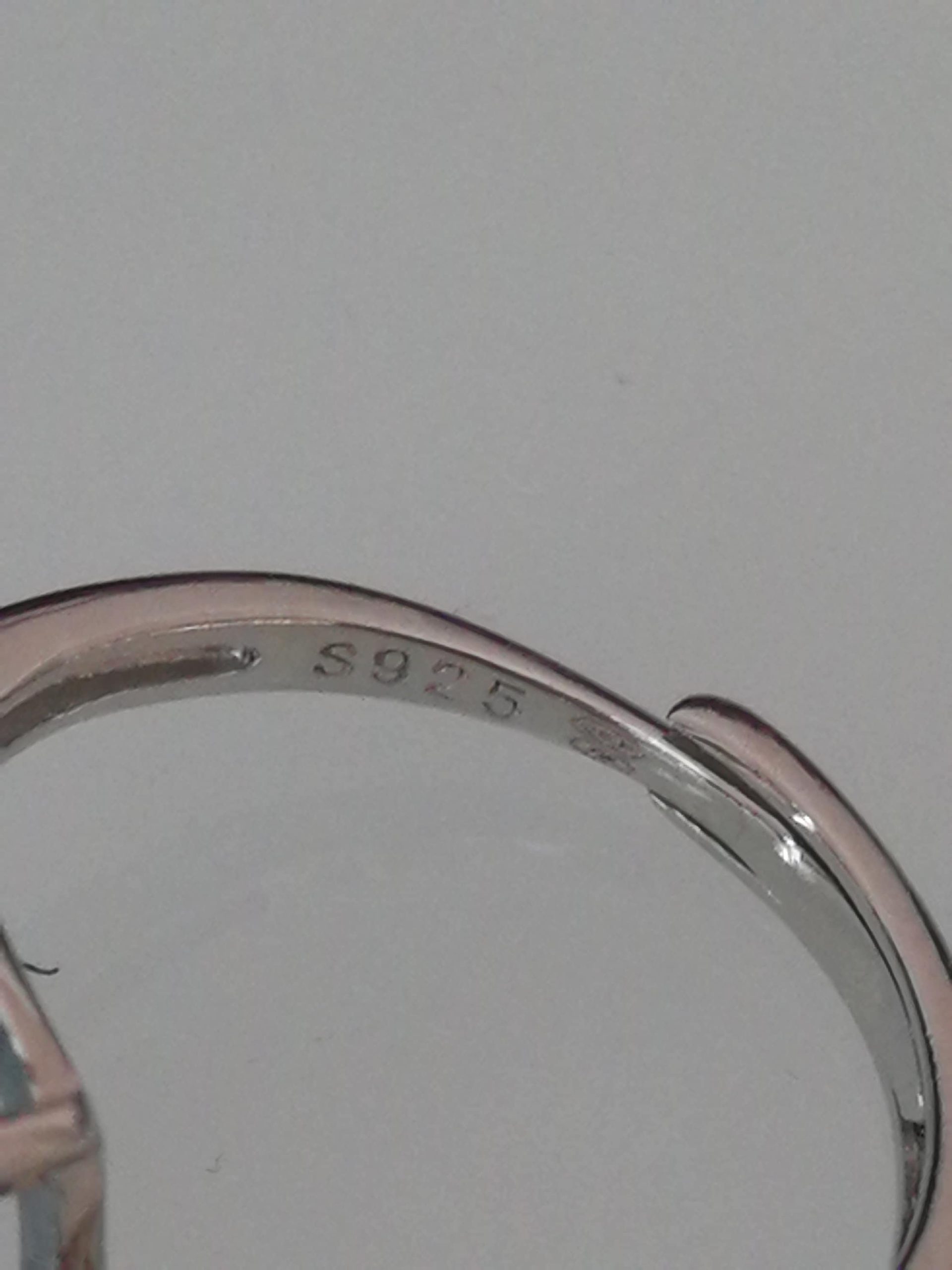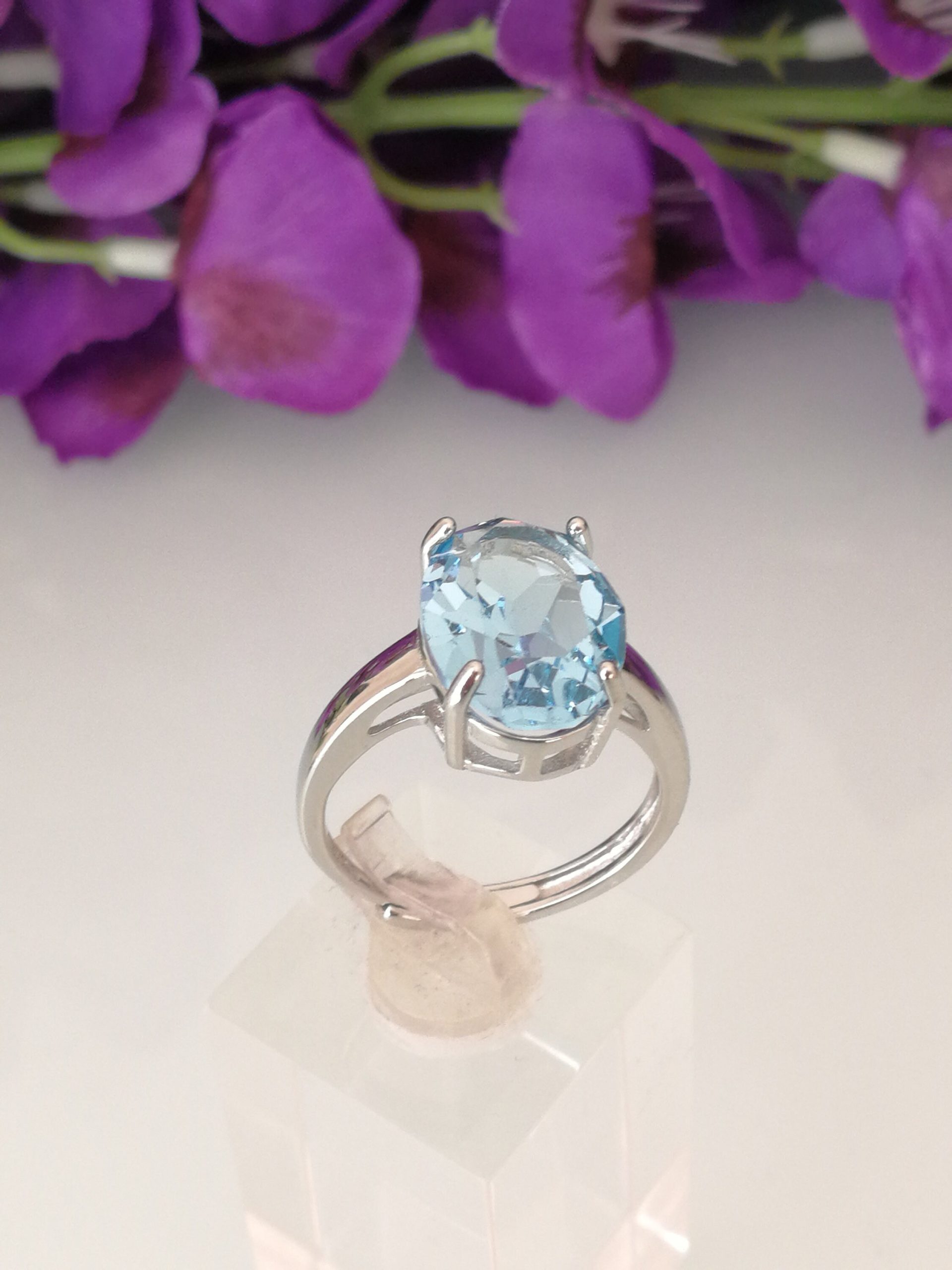 Anello in stile Liberty con pietra acquamarina imitazione sfaccettata, taglio diamante, montatura in argento 925. Misura anello regolabile