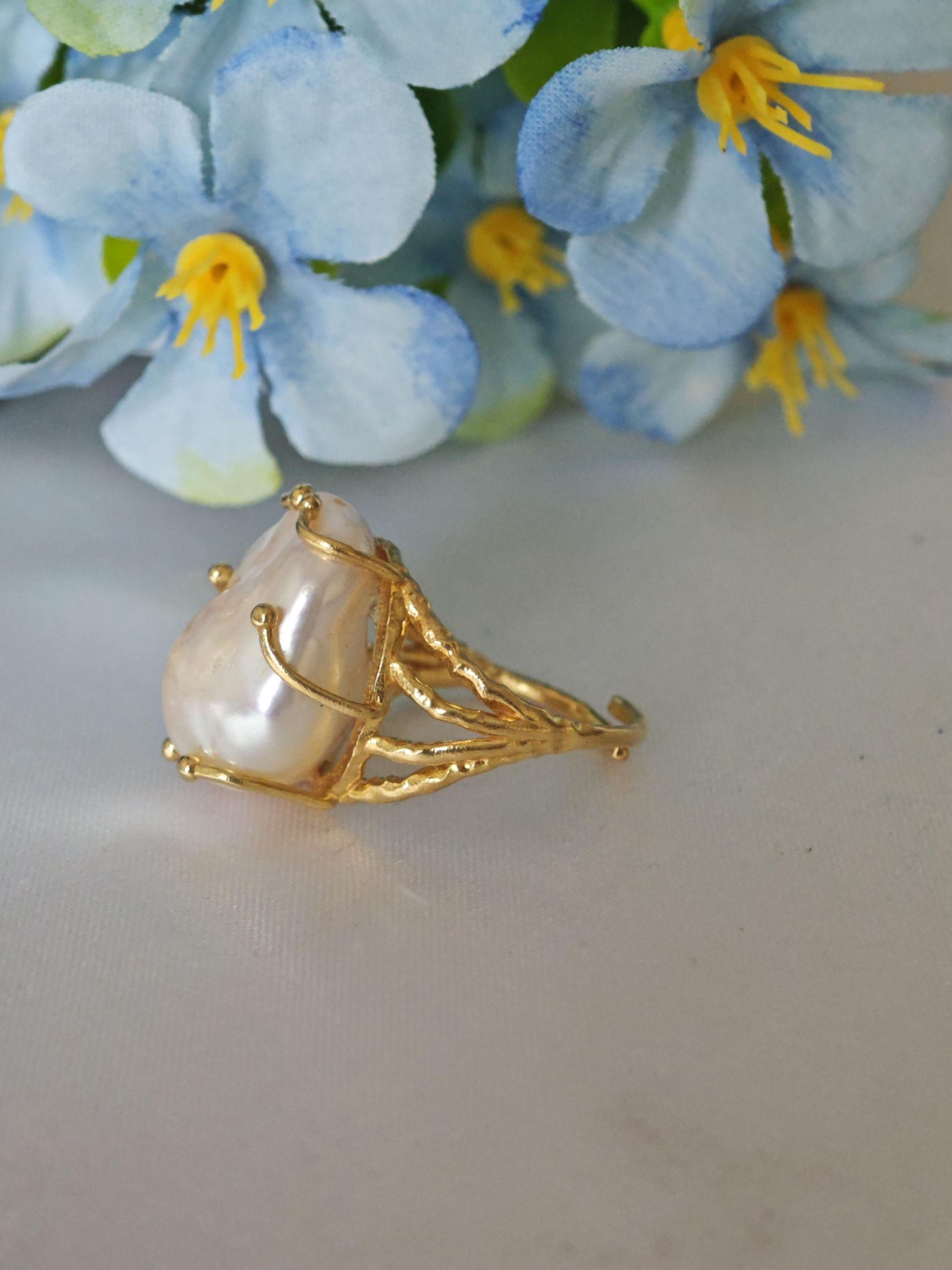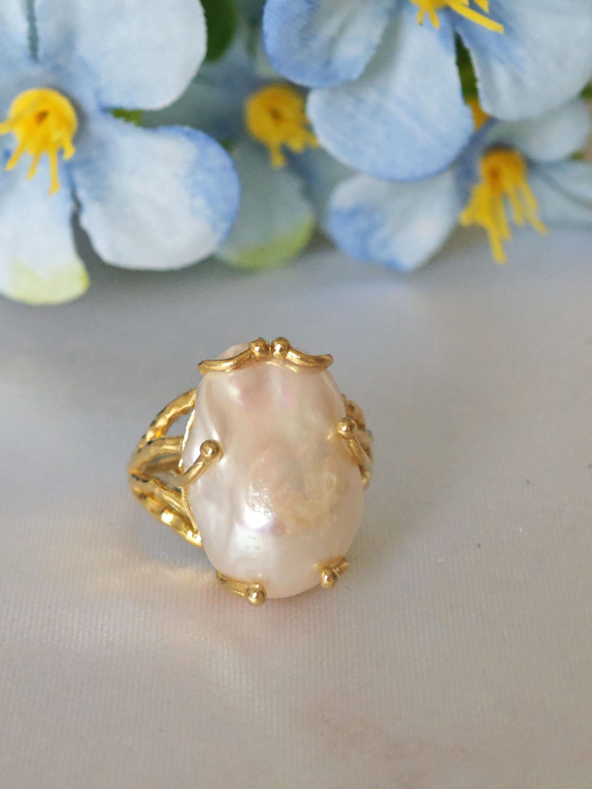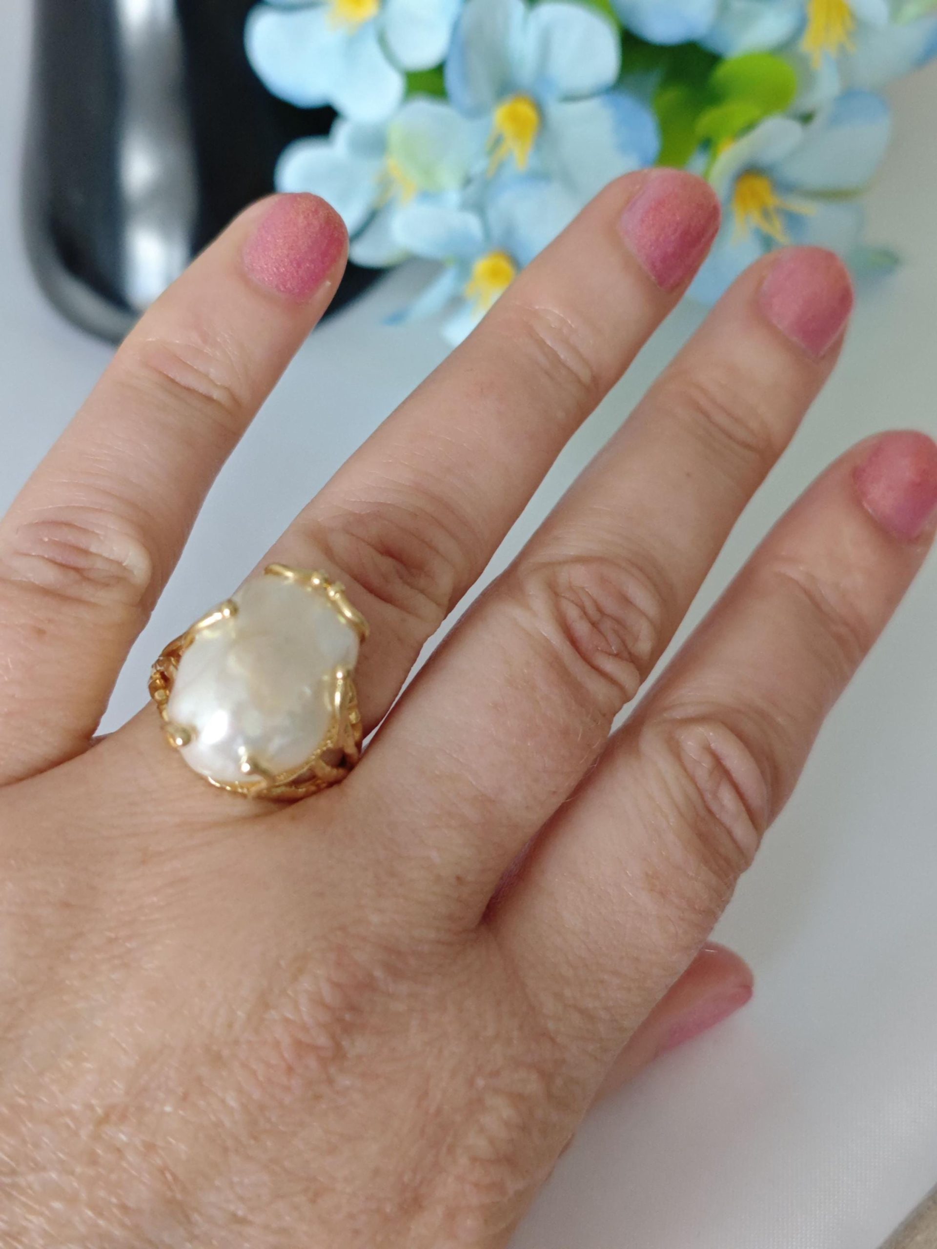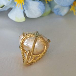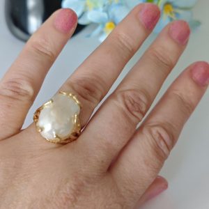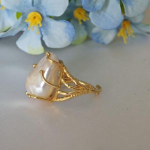 Anello in argento 925 placcato oro con perla barocca bianca.
