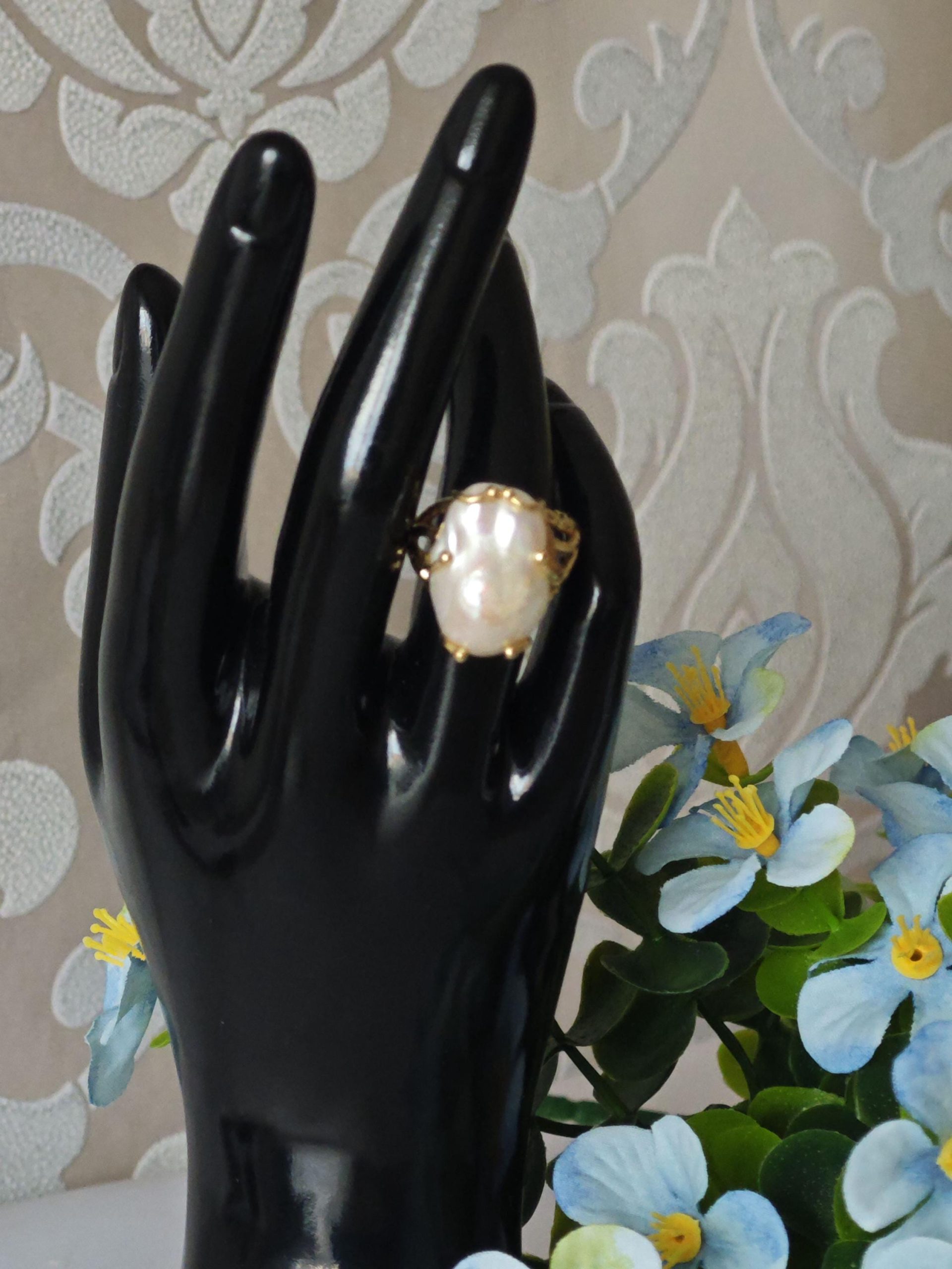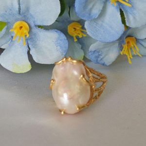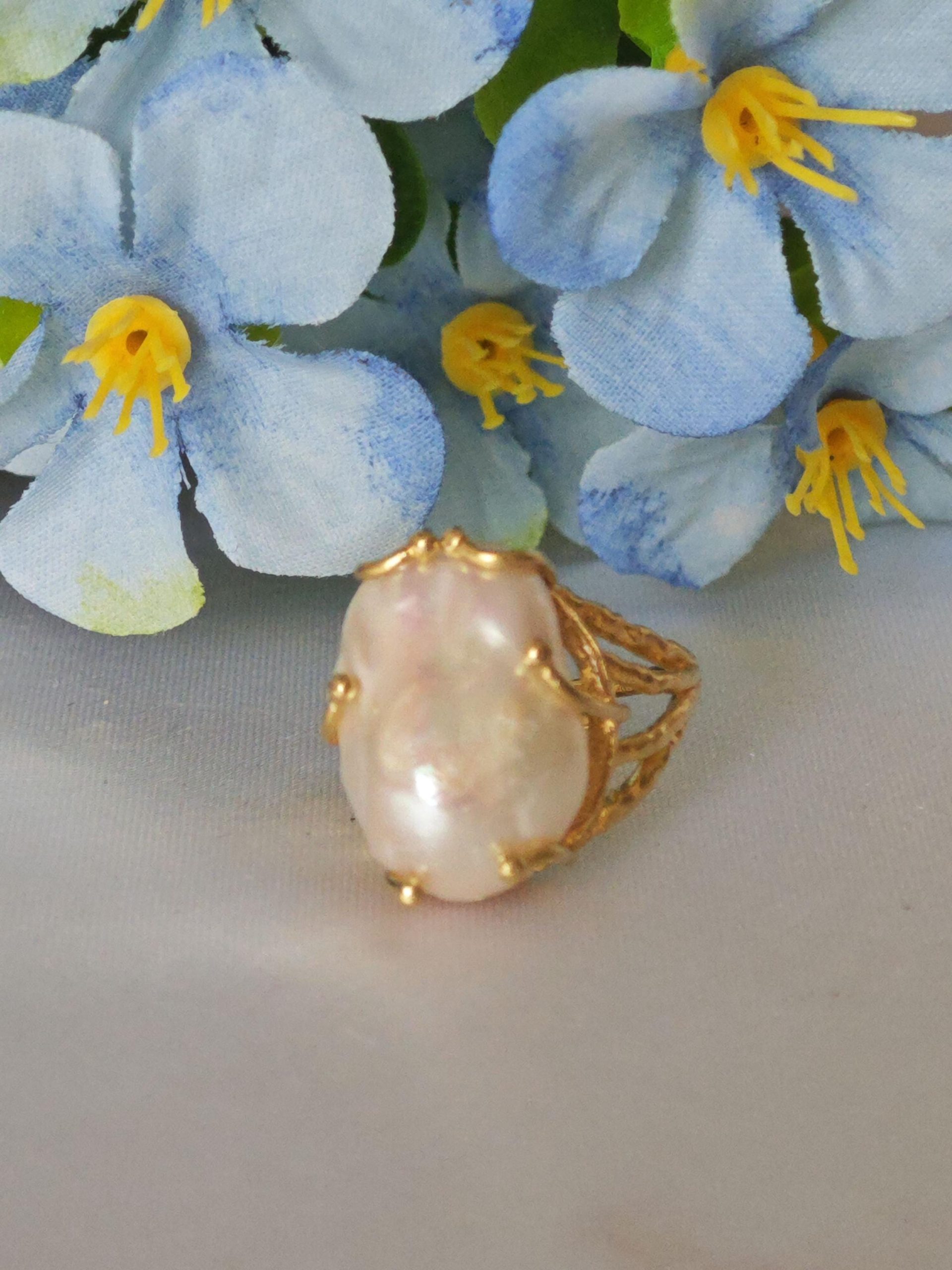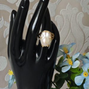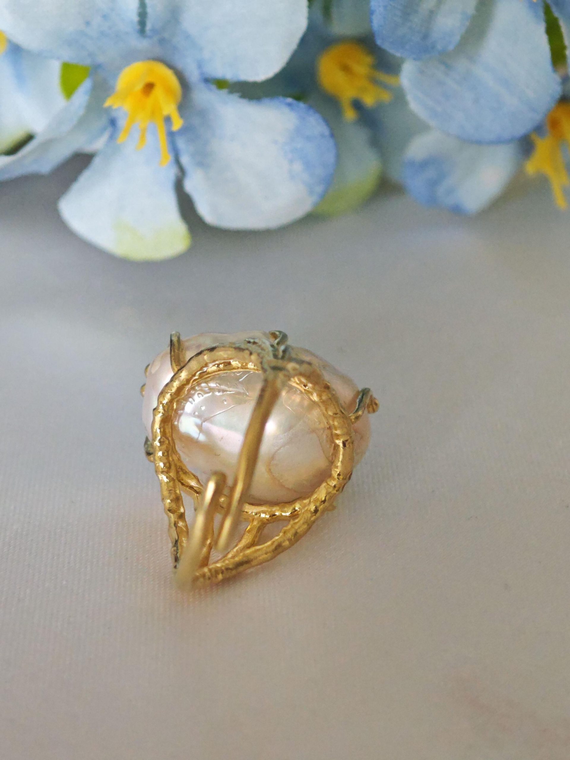 Anello in argento 925 placcato oro con perla barocca bianca.