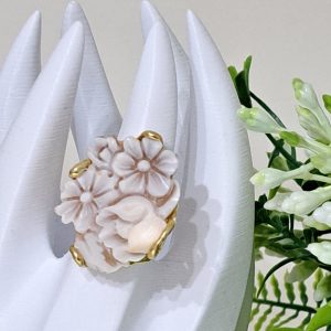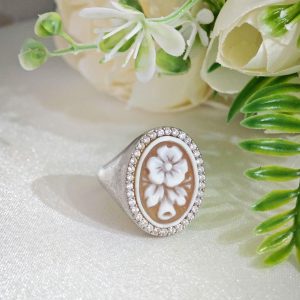 Categoria: Anelli Cammeo Tag: Anello argento, Anello cammeo, Anello Fiore, Anello San Valentino, Anello zirconi, Cammeo conchiglia, Cammeo sardonico, Cammeo vero
