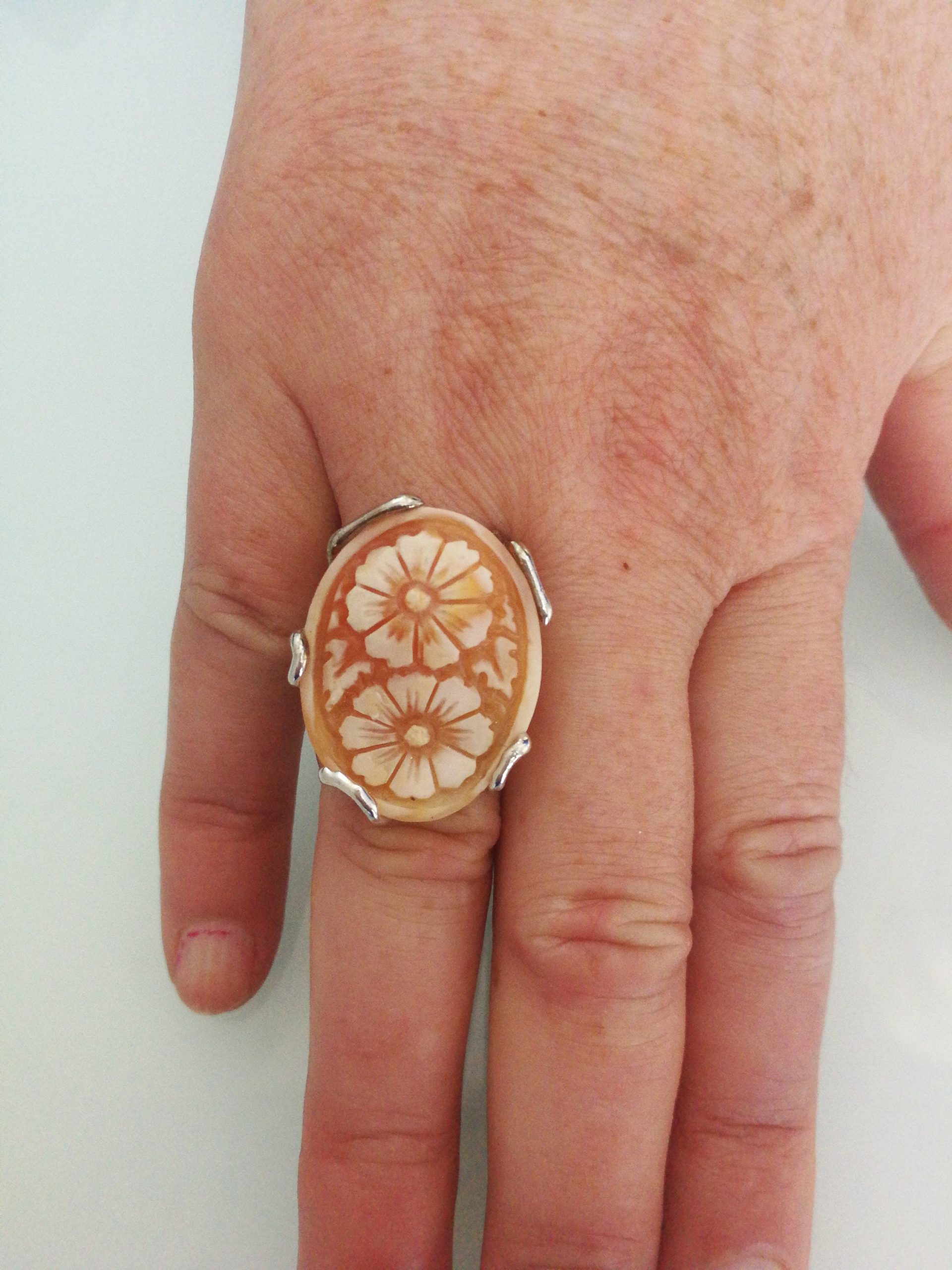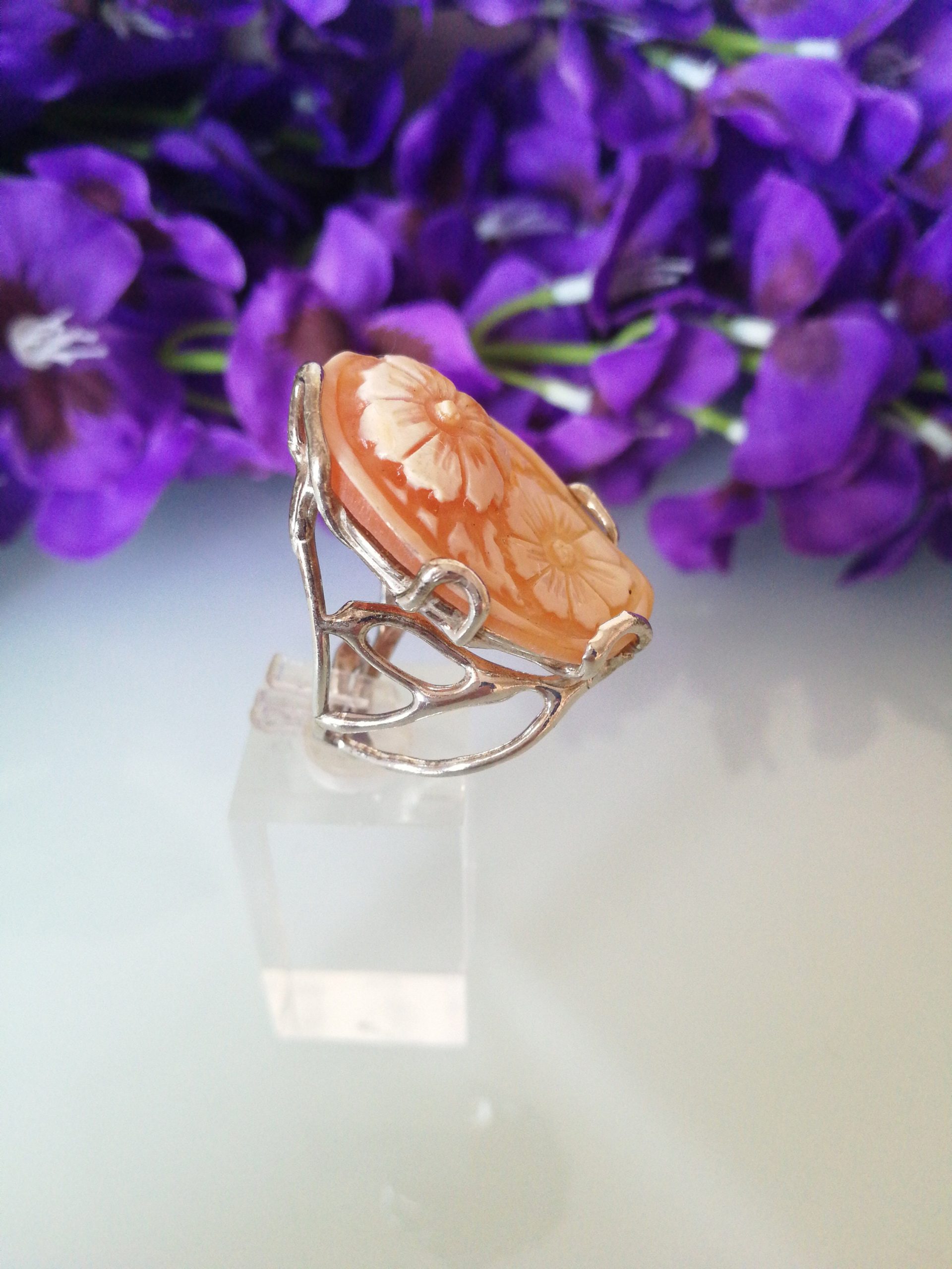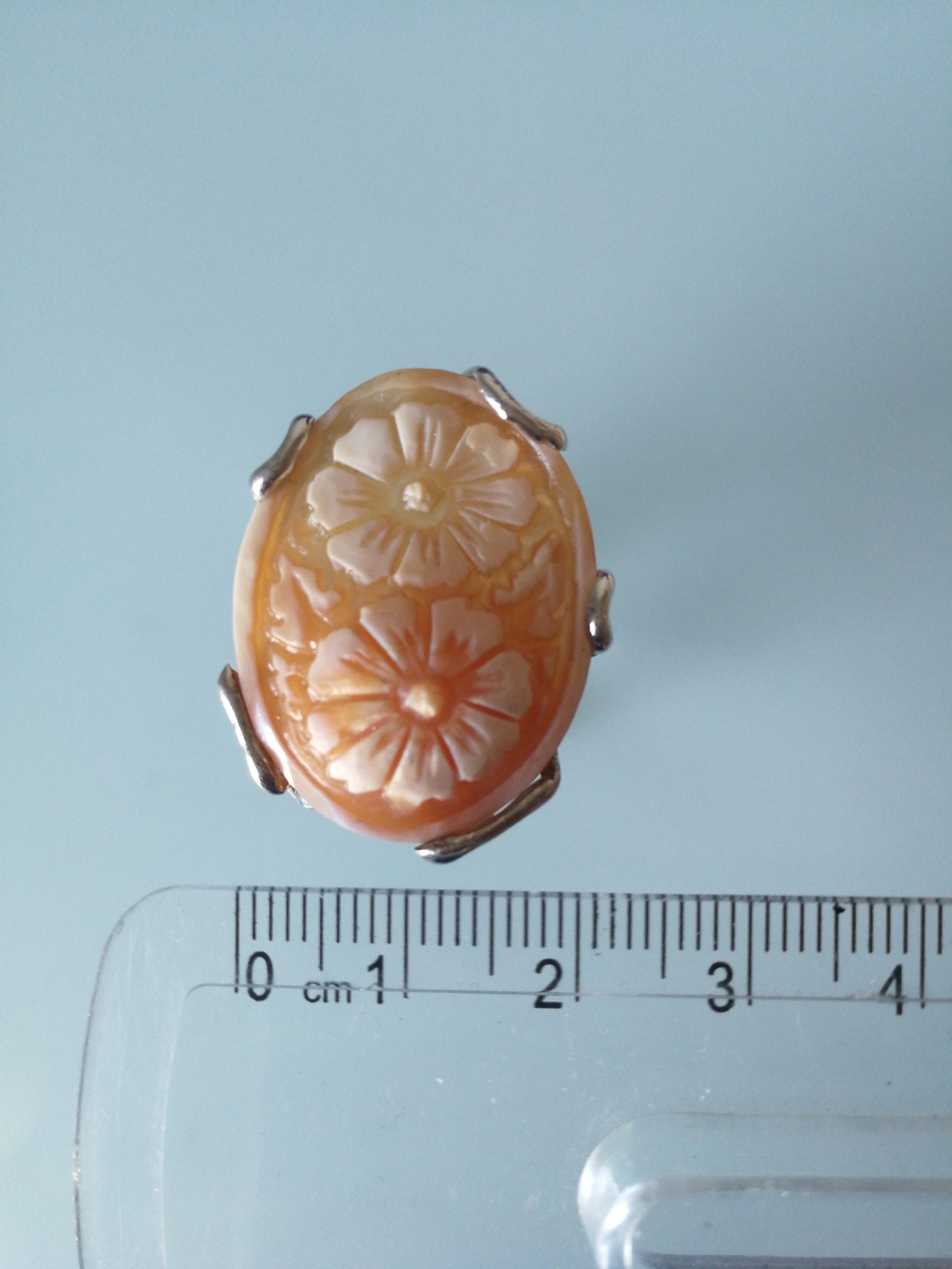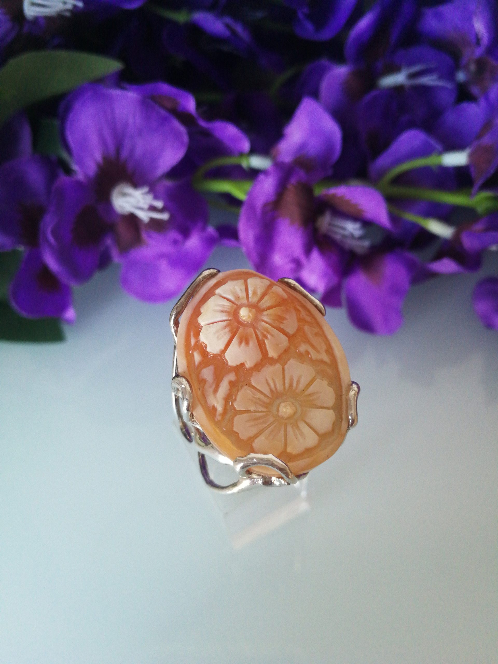 Anello cammeo conchiglia originale. Anello argento. Cammeo sardonico.