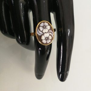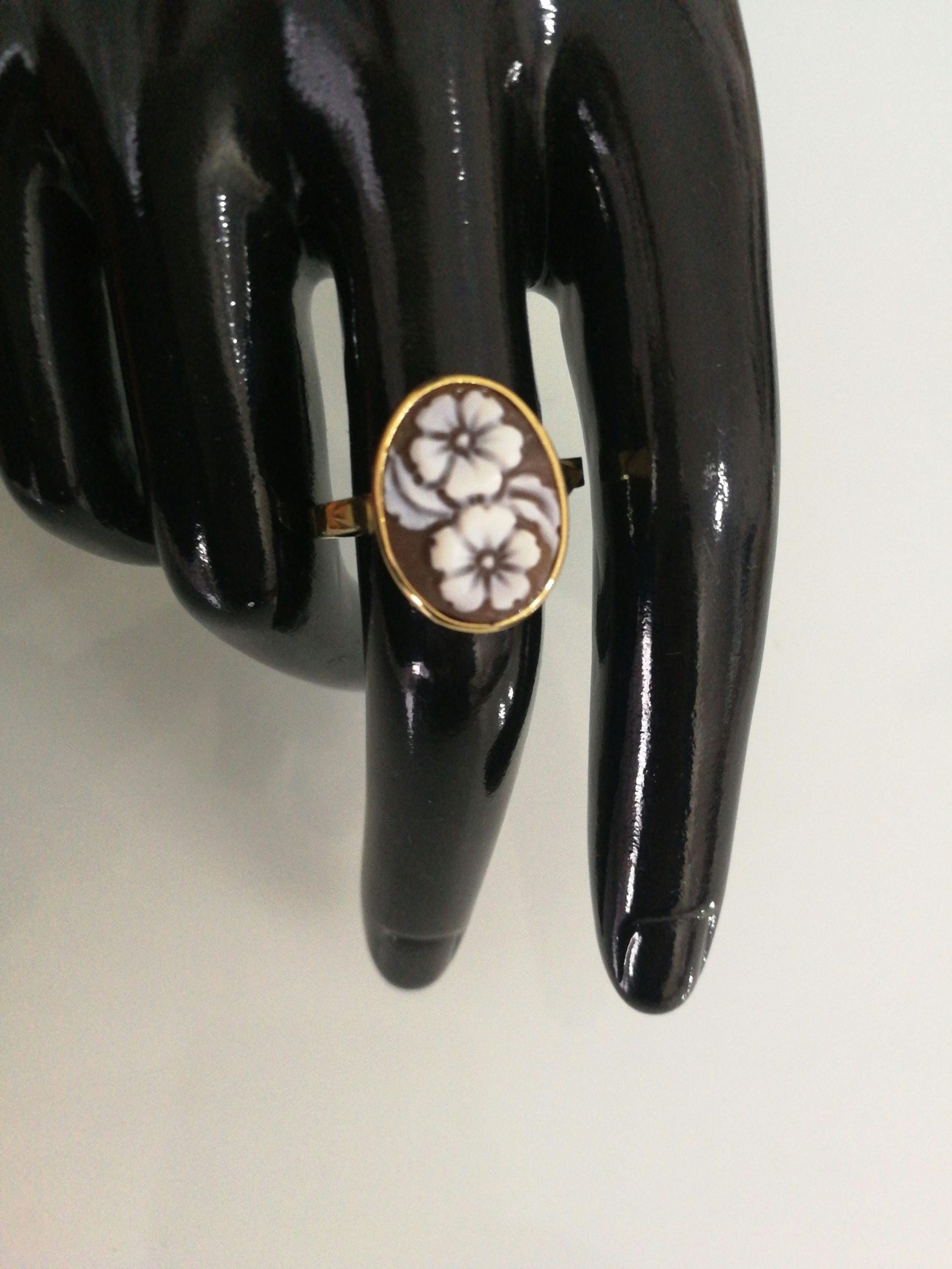 Anello cammeo fiore in conchiglia sardonica con zirconi , gioielli italiani