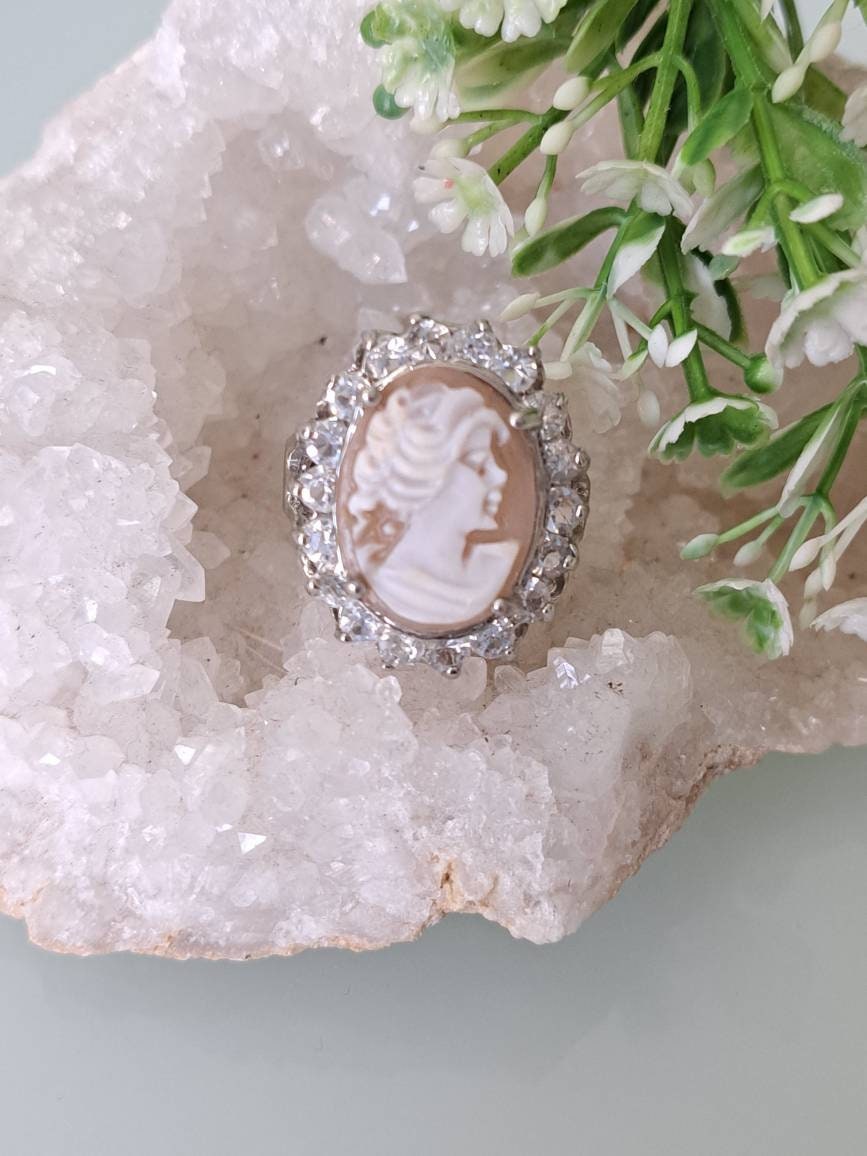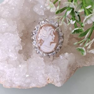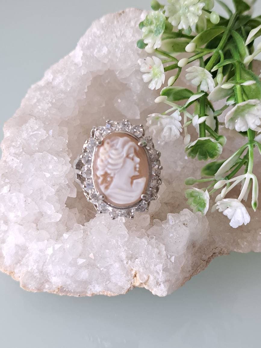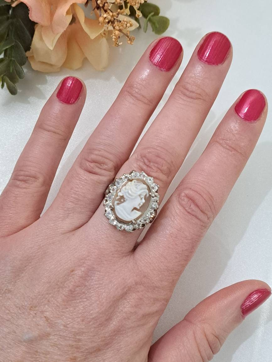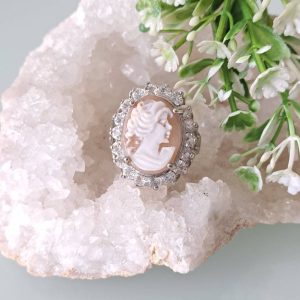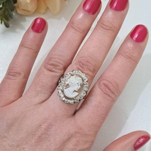 Anello cammeo conchiglia sardonica e cristalli , gioielli italiani