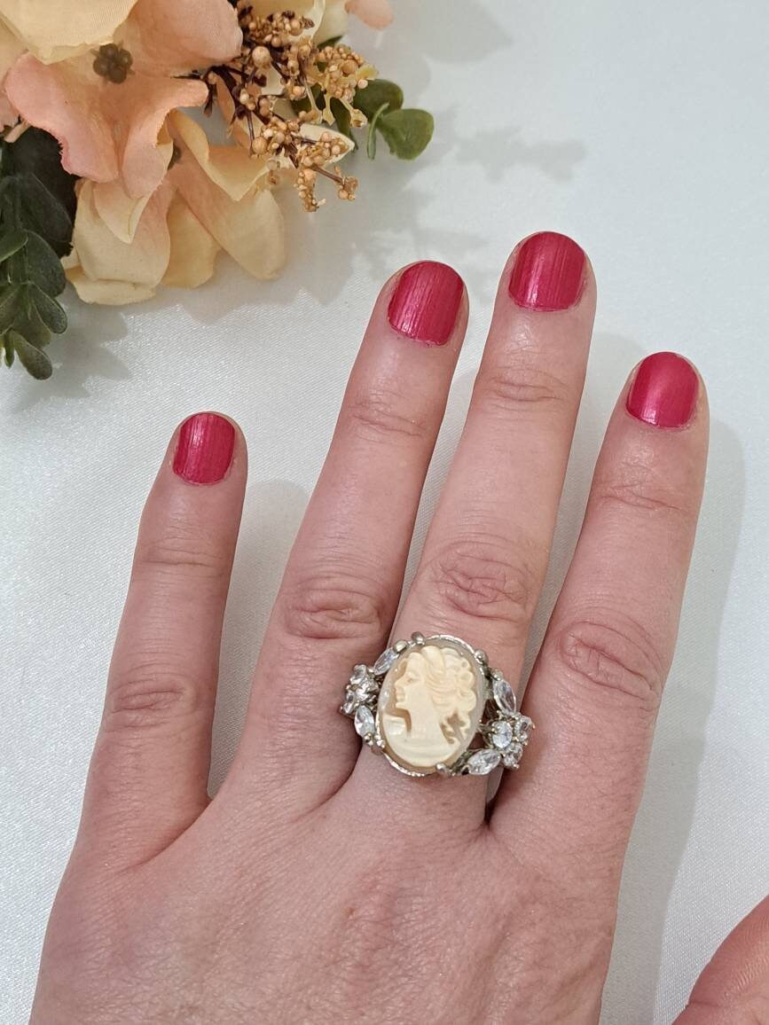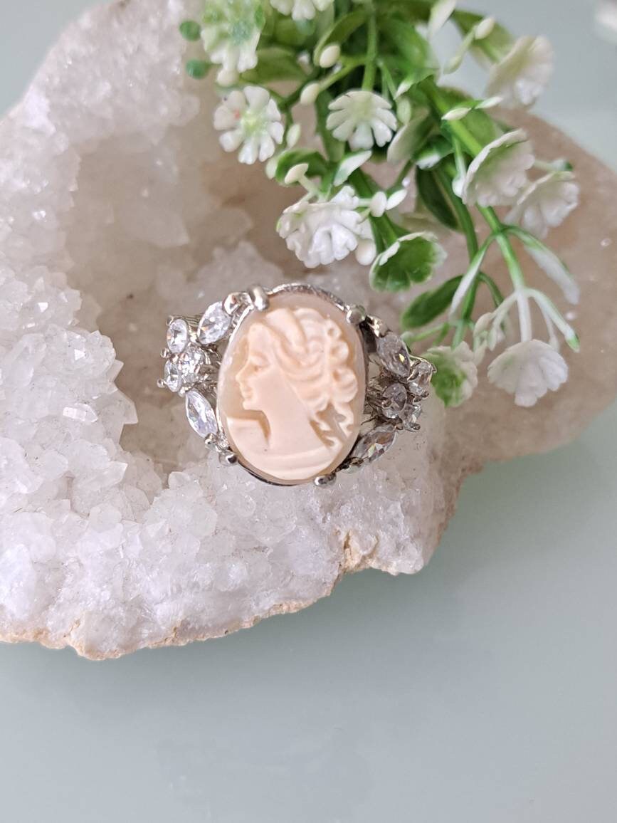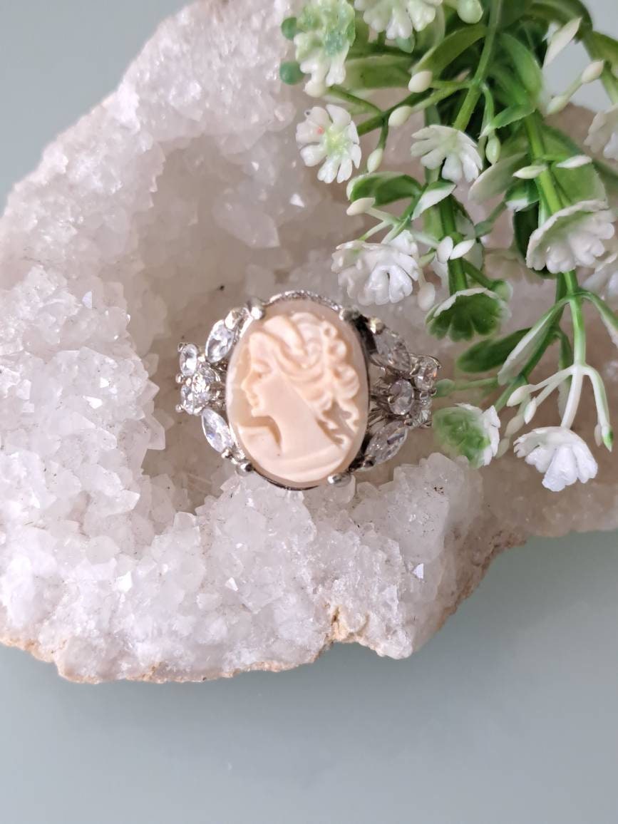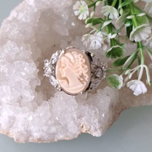 Anello cammeo conchiglia sardonica e cristalli , gioielli italiani