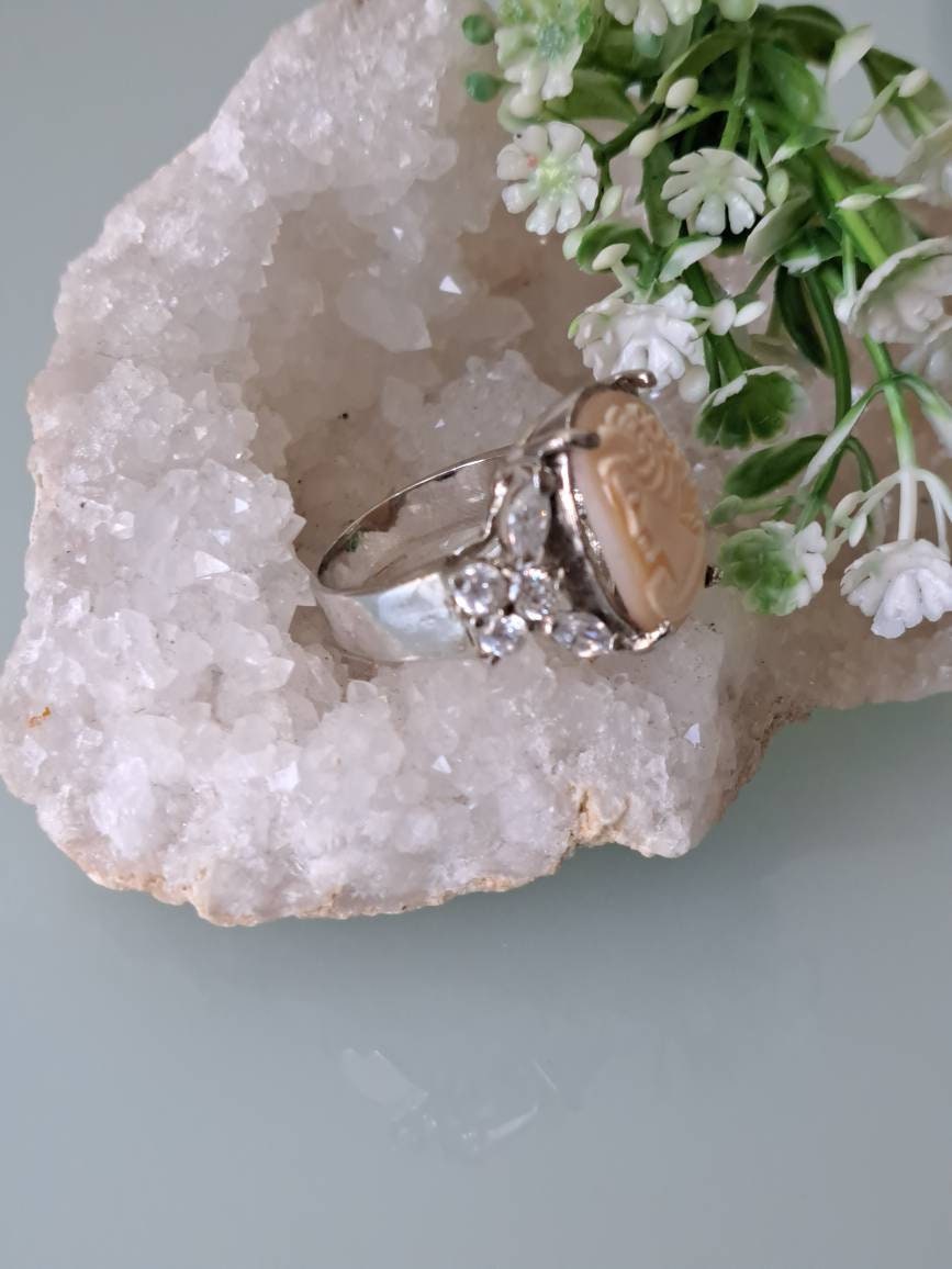 Anello  cammeo conchiglia corniola , anello maxi argento 925 , gioielli italiani