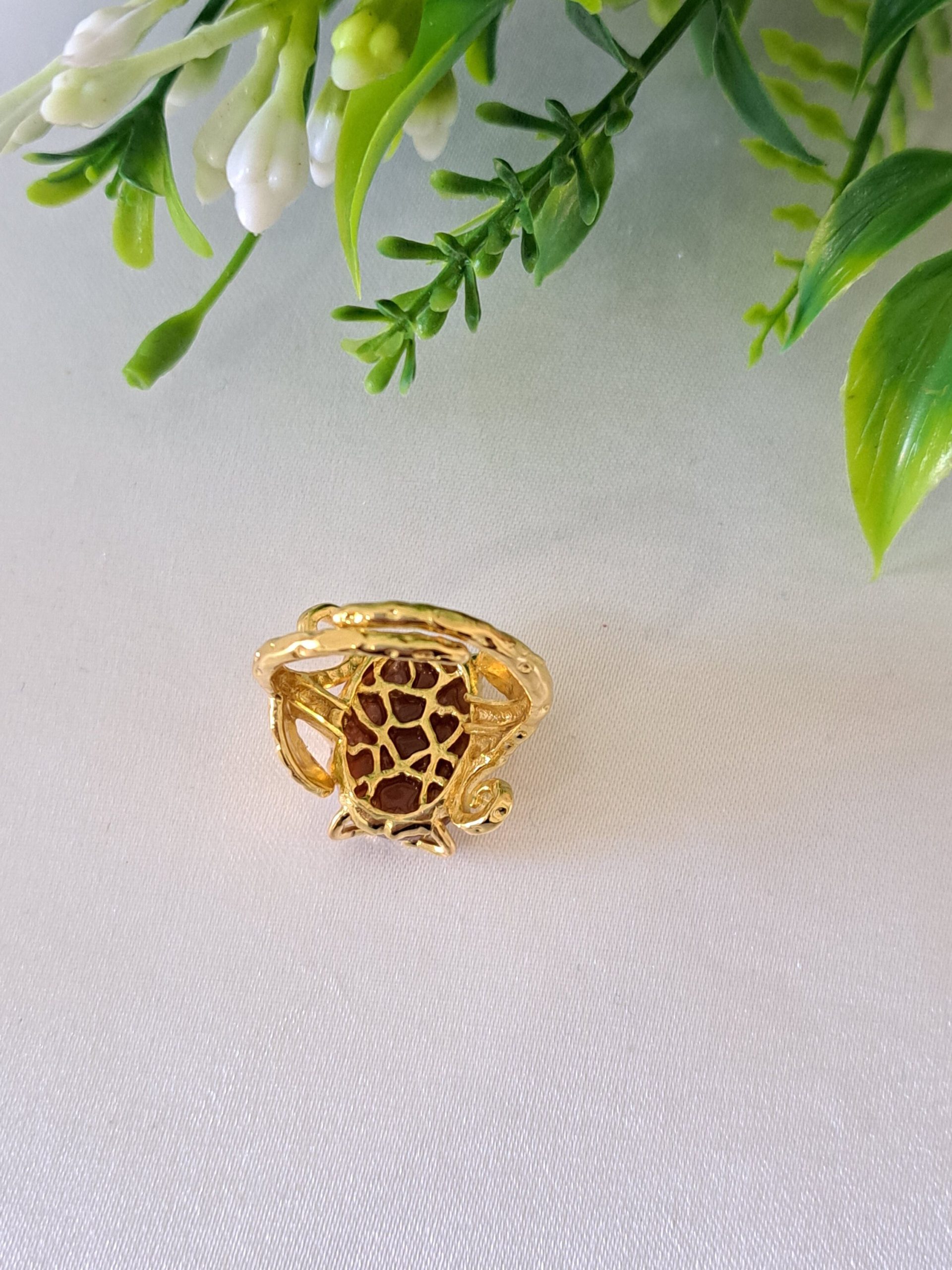 Anello cammeo, conchiglia sardonica e ottone dorato