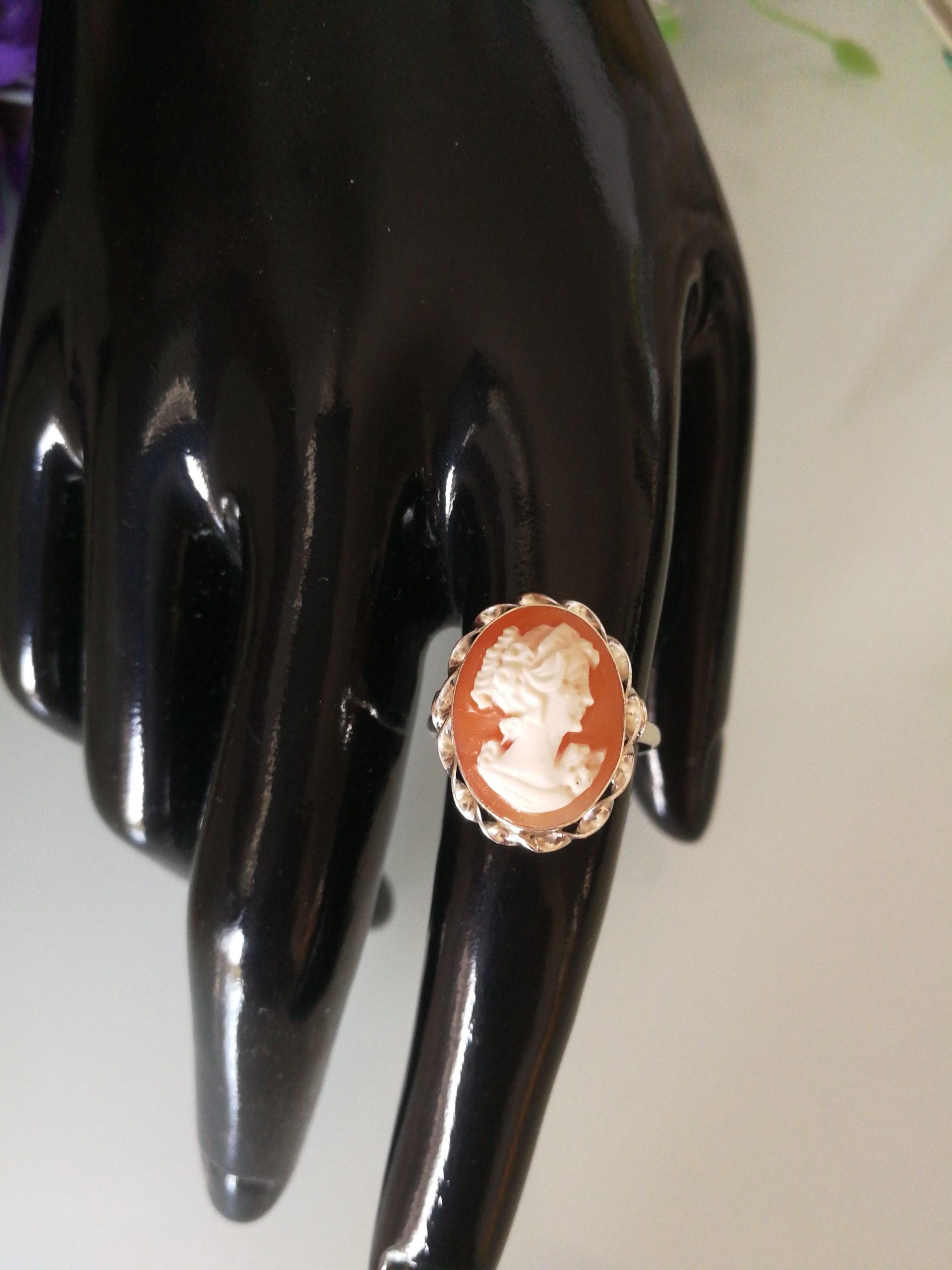 Anello stile vintage con cammeo conchiglia originale con volto di donna. Montatura in argento 925 a lavorazione artigianale  .Il cammeo è grande lunghezza 2 cm /Larghezza cm 1 .Misura anello regolabile.Con scatola regalo.Cammeo perfetto.