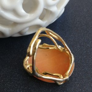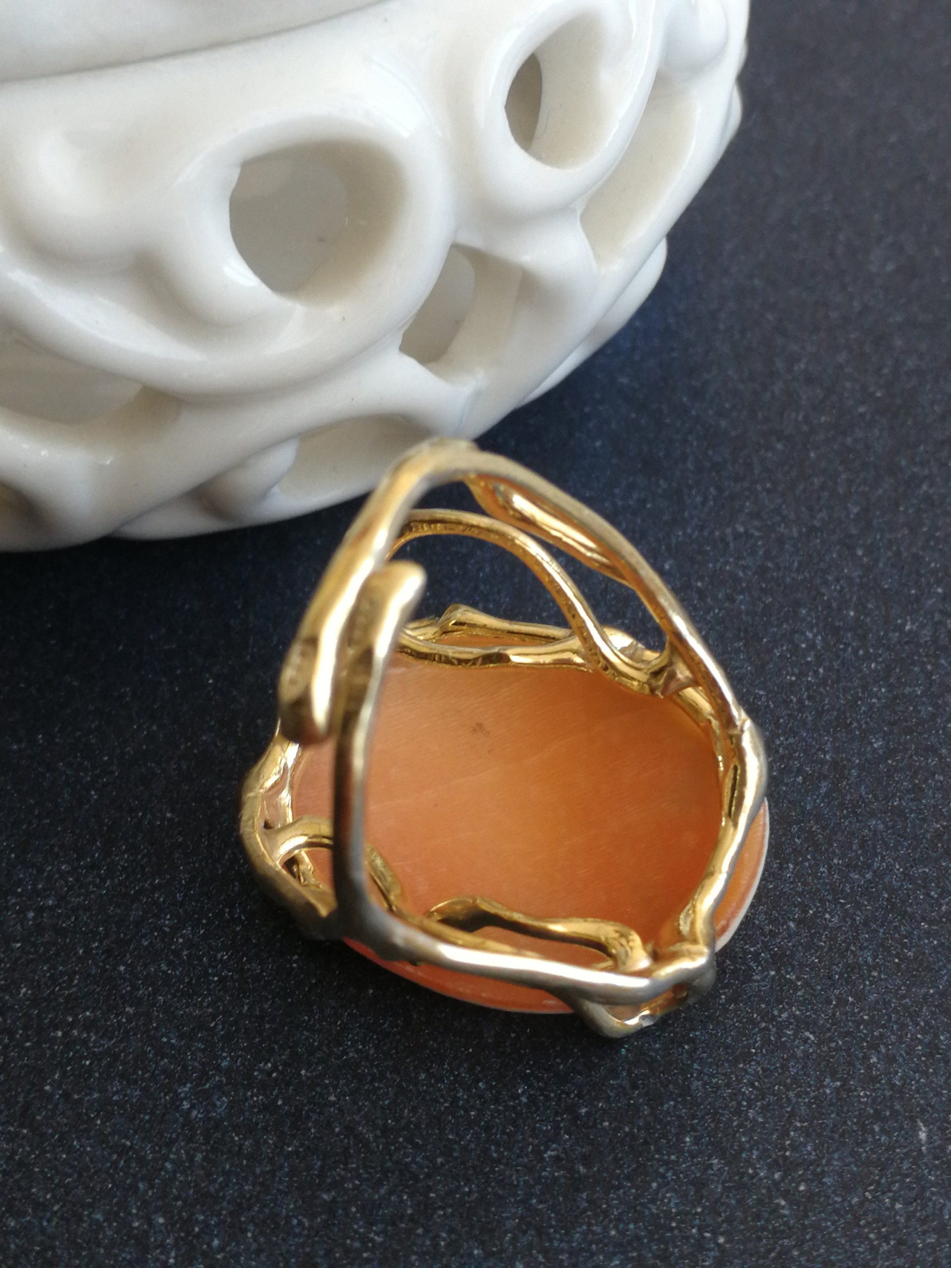Anello cammeo pasta di corallo bianco e ottone dorato , anello maxi, gioielli italiani