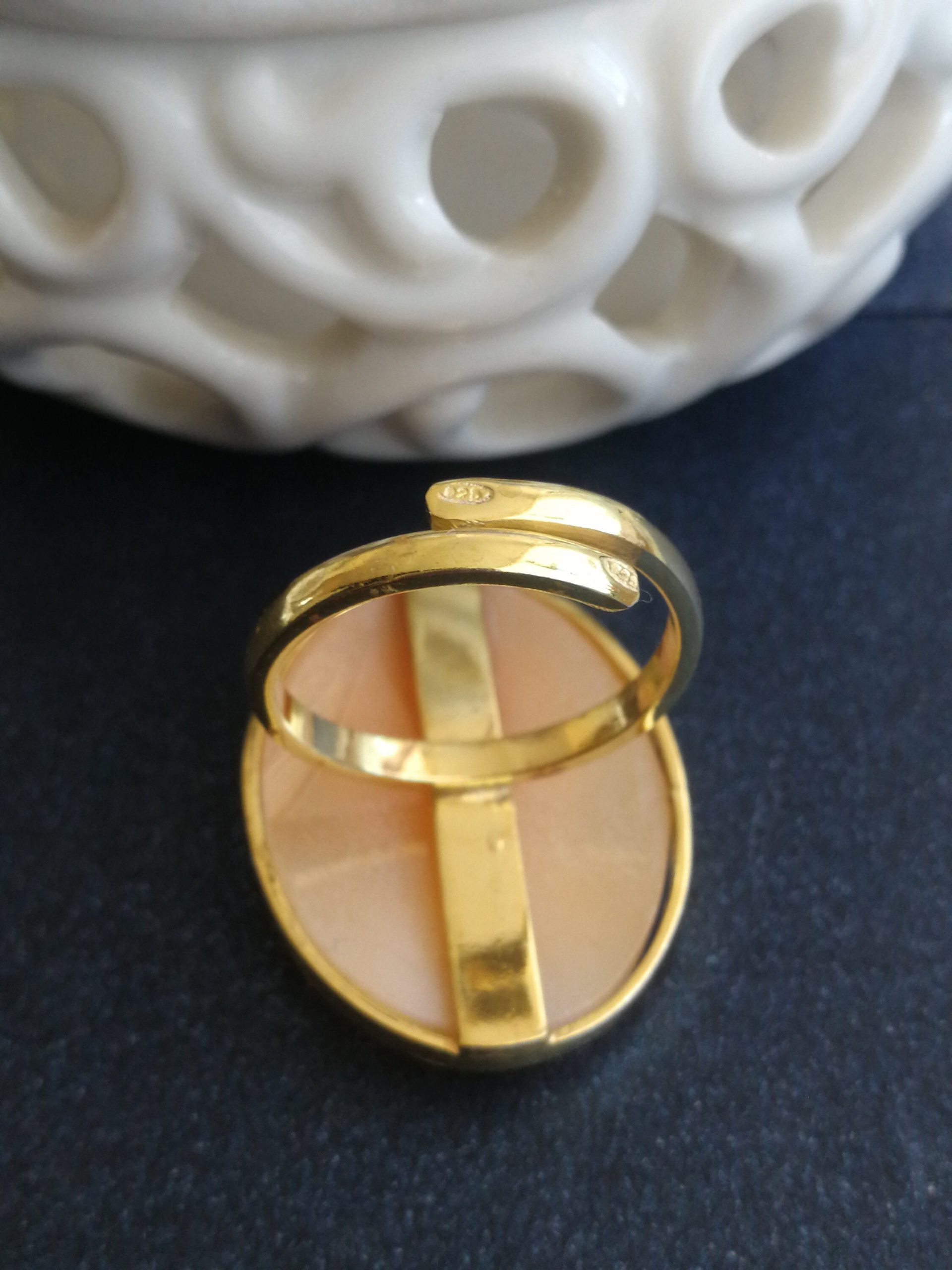 Anello cammeo conchiglia sardonica e argento 925 placcato oro ,anello maxi , gioielli italiani