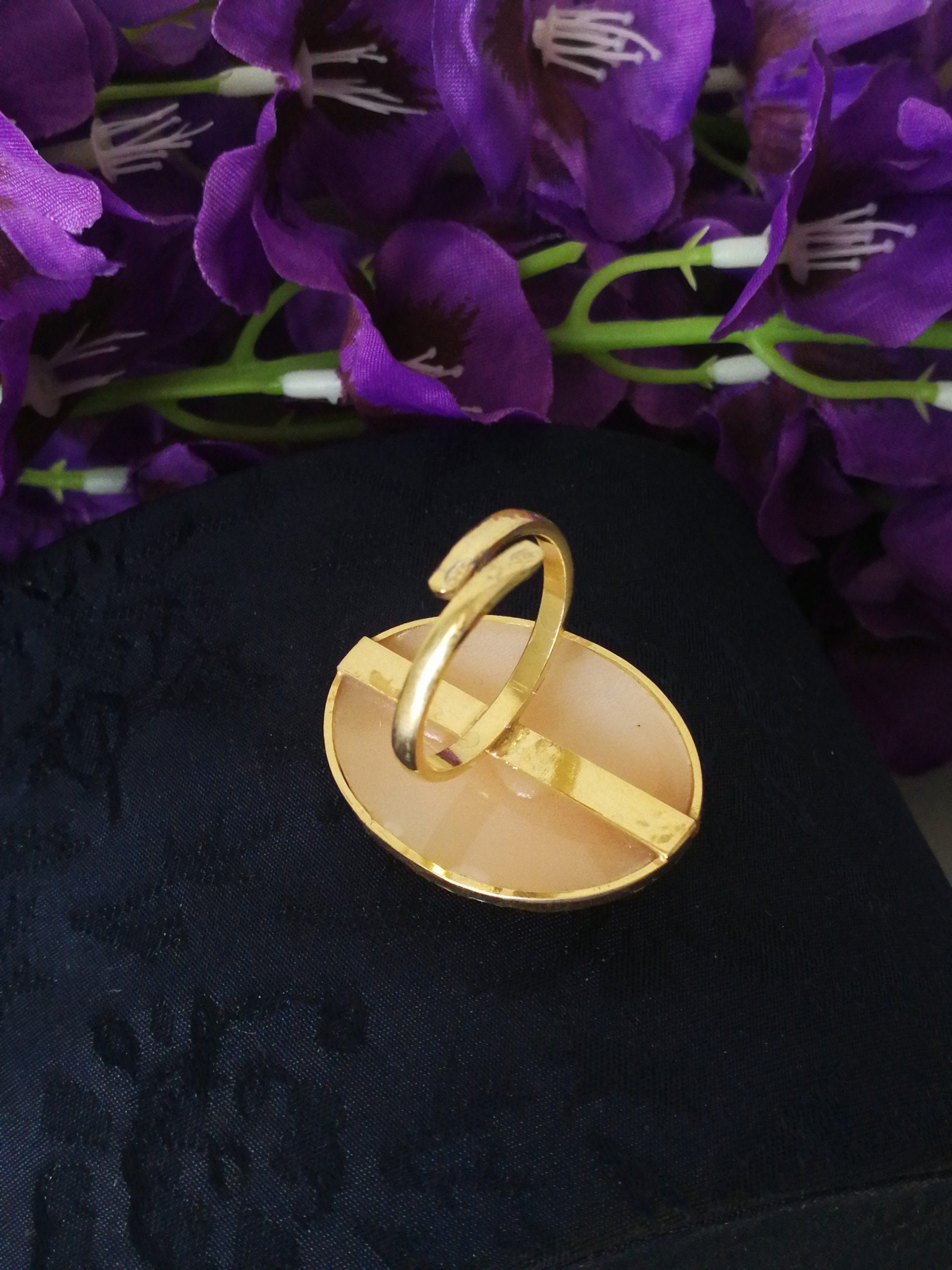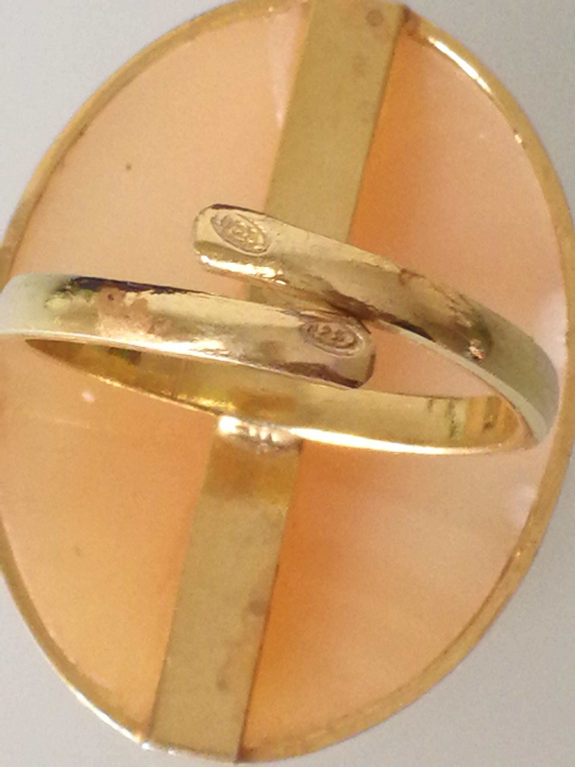 Anello cammeo pasta di corallo rosso e ottone dorato, anello maxi, gioielli italiani