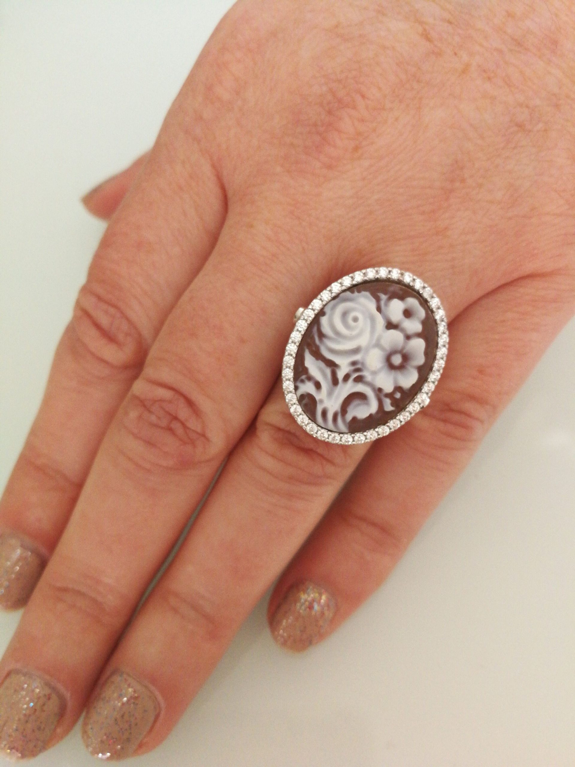 Anello cammeo conchiglia sardonica e cristalli , gioielli italiani