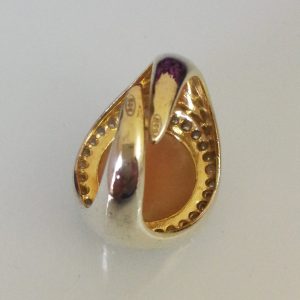 Anello cammeo pasta di corallo bianco e ottone dorato , anello maxi, gioielli italiani