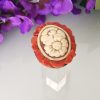 Anello maxi cammeo conchiglia sardonica ei corallo rosso naturale in ottone dorato,  gioielli italiani