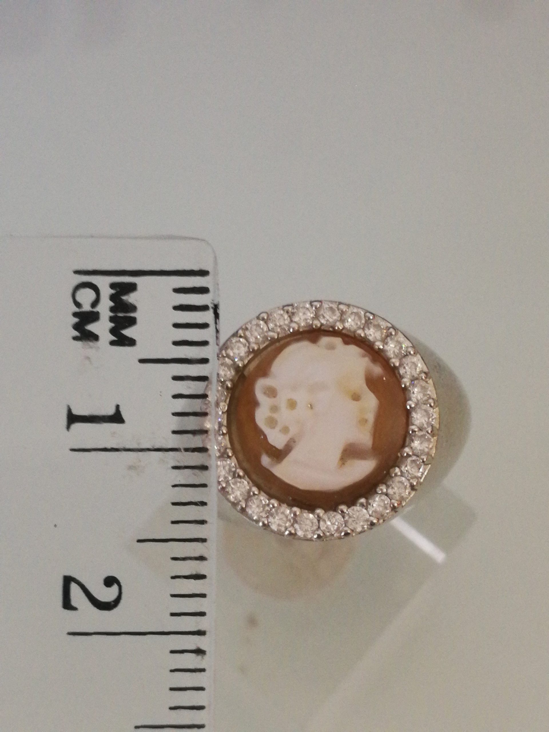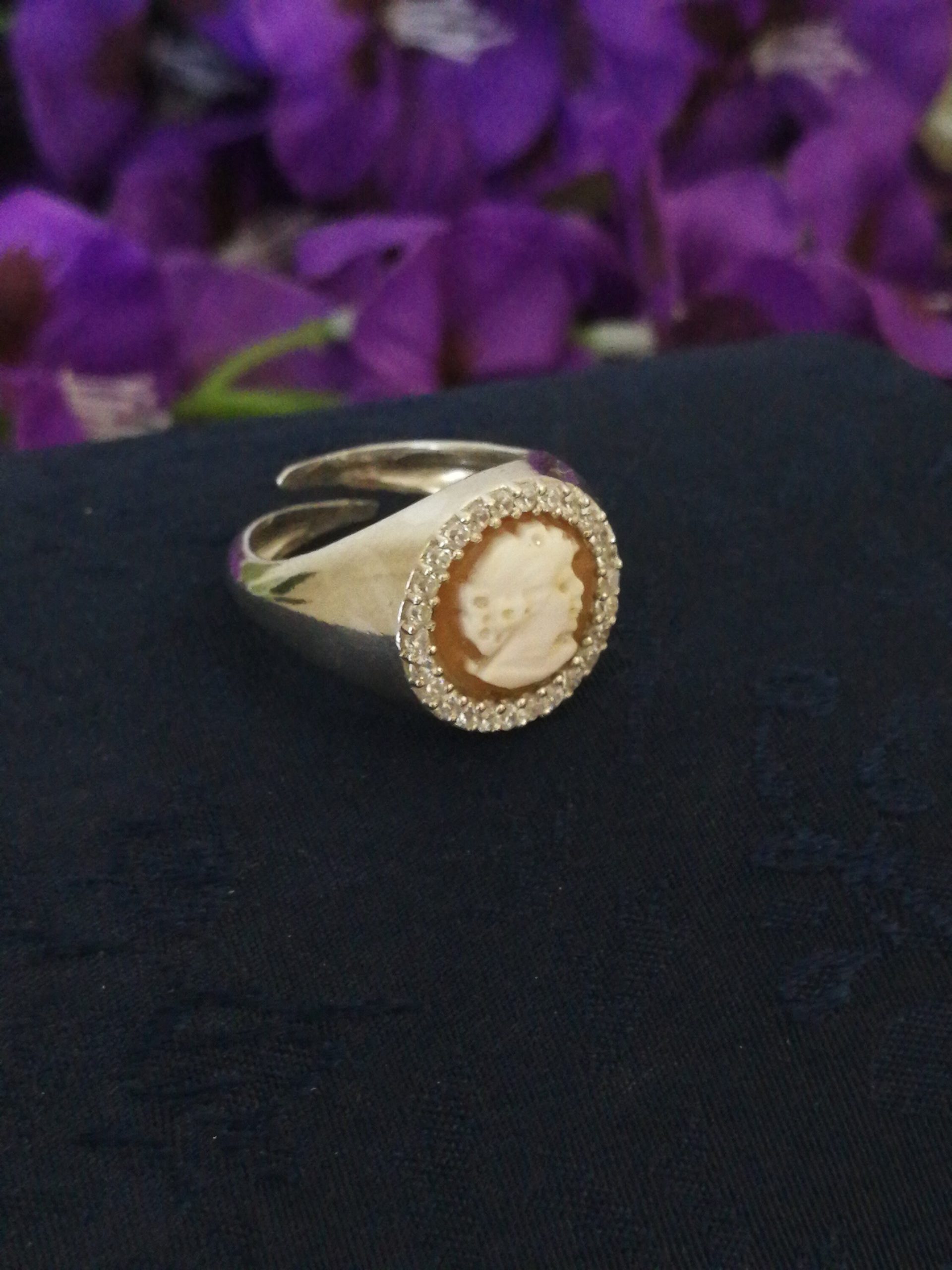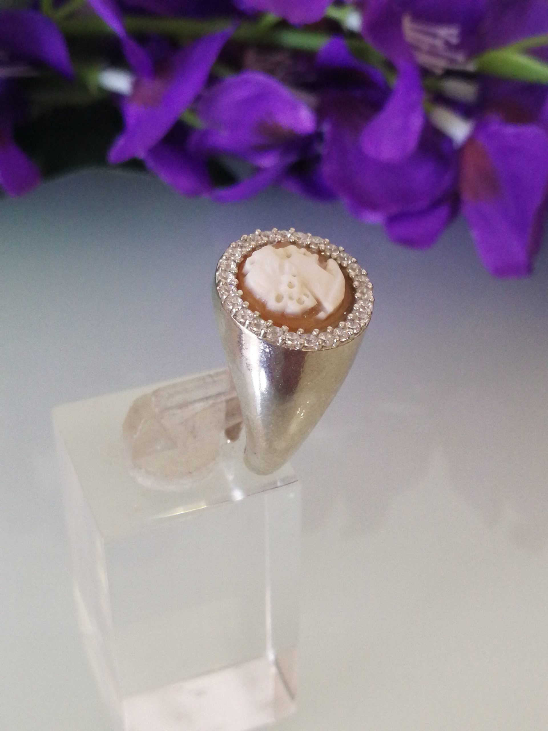 Anello cammeo originale e zirconi bianchi. Anello argento.Cammeo sardonico