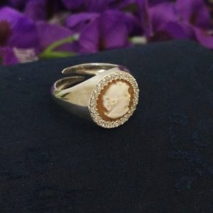 Anello cammeo conchiglia sardonica e argento 925 , gioielli italiani