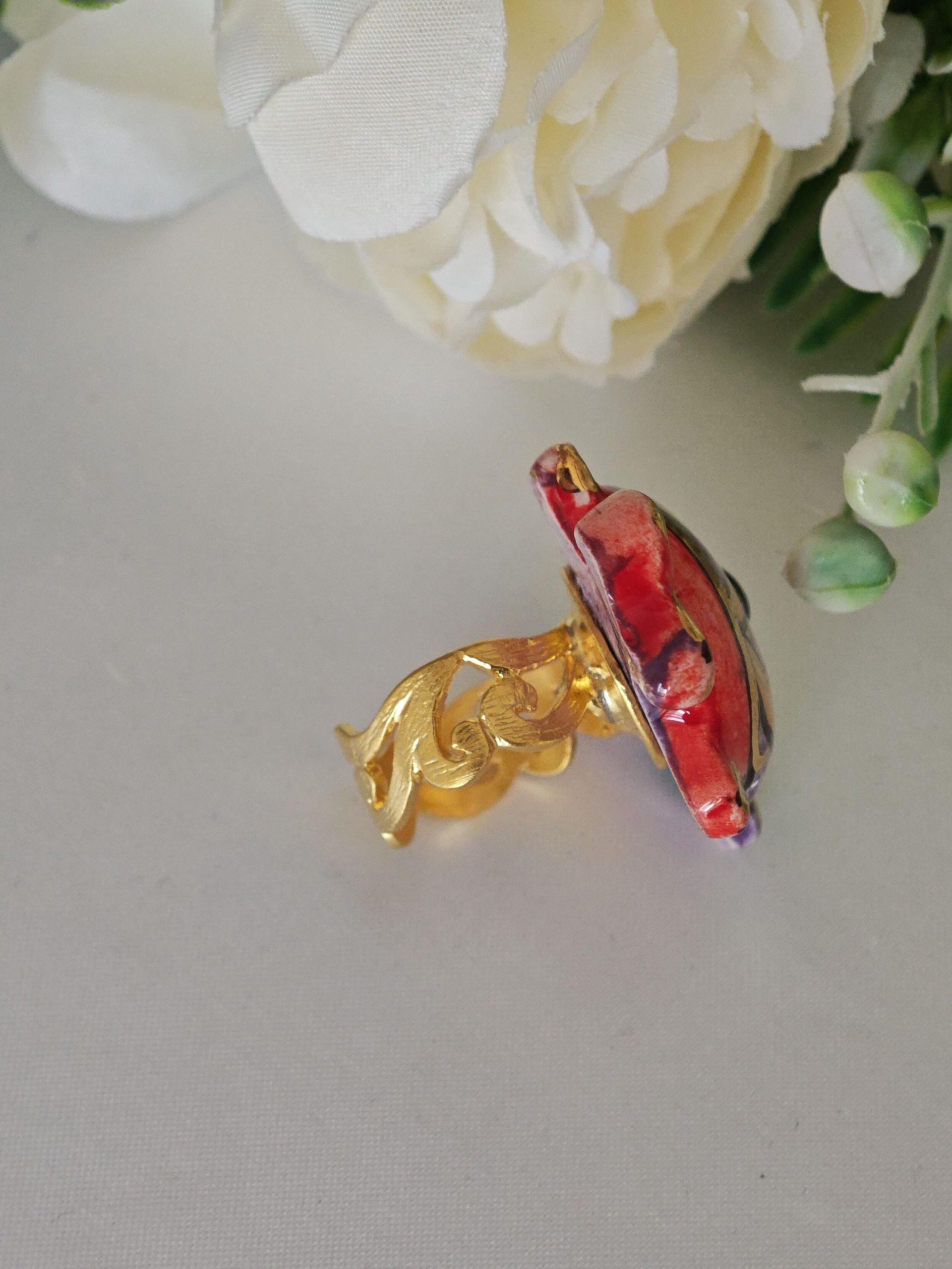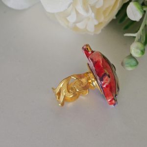 Anello rosa corallo imitazione , anello fiore e ottone dorato