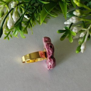 Anello rosa pasta di corallo rosso e ottone dorato , anello maxi