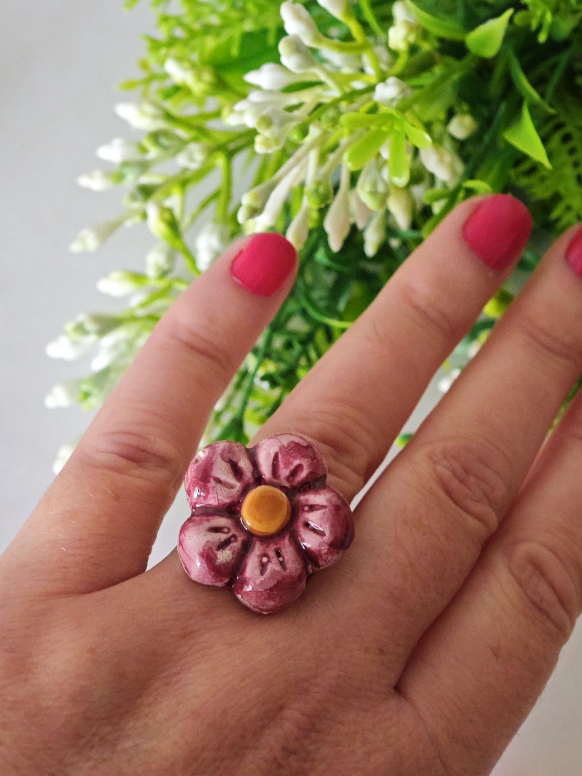 Anello ceramica di Caltagirone, anello fiore , anello siciliano