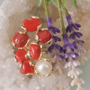 Anello corallo rosso naturale e perle bianche , anello argento 925, gioielli italiani