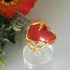 Anello rosa corallo rosa imitazione e ottone dorato, anello fiore
