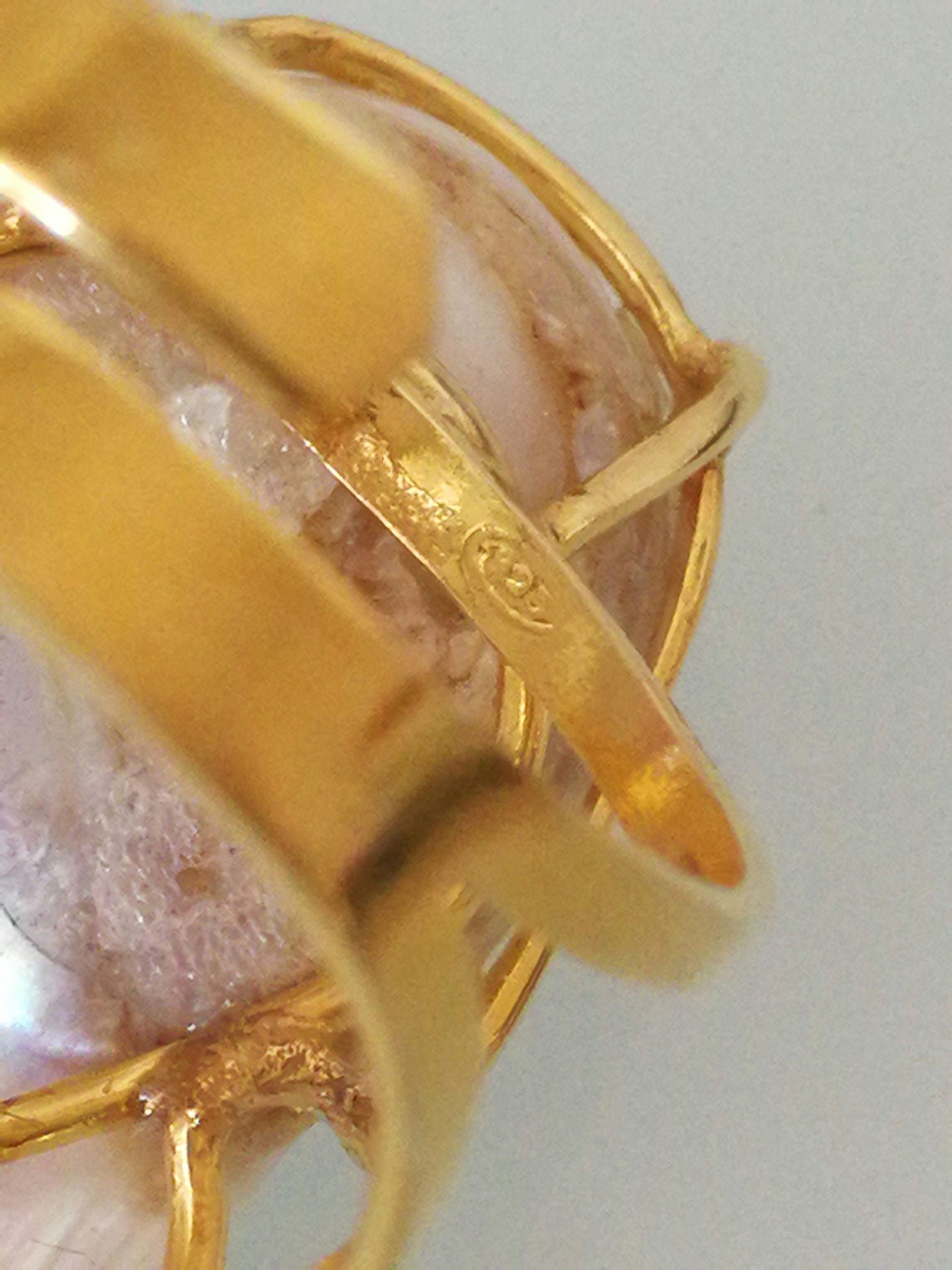 Anello rosa pasta di corallo rosso e ottone dorato , anello maxi