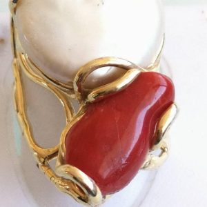 Anello maxi corallo rosso mediterraneo , anello argento 925 , gioielli italiani