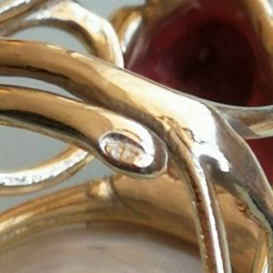 Anello corallo rosso naturale mediterraneo e argento 925 placcato oro , gioielli italiani