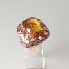 Anello rosa corallo imitazione , anello fiore e ottone dorato